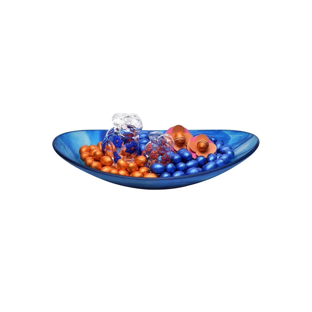 Brighten your celebration with this blue resin bowl, filled with premium chocolates with nuts, cream, biscuits, and indulgent flavors, 1600g.