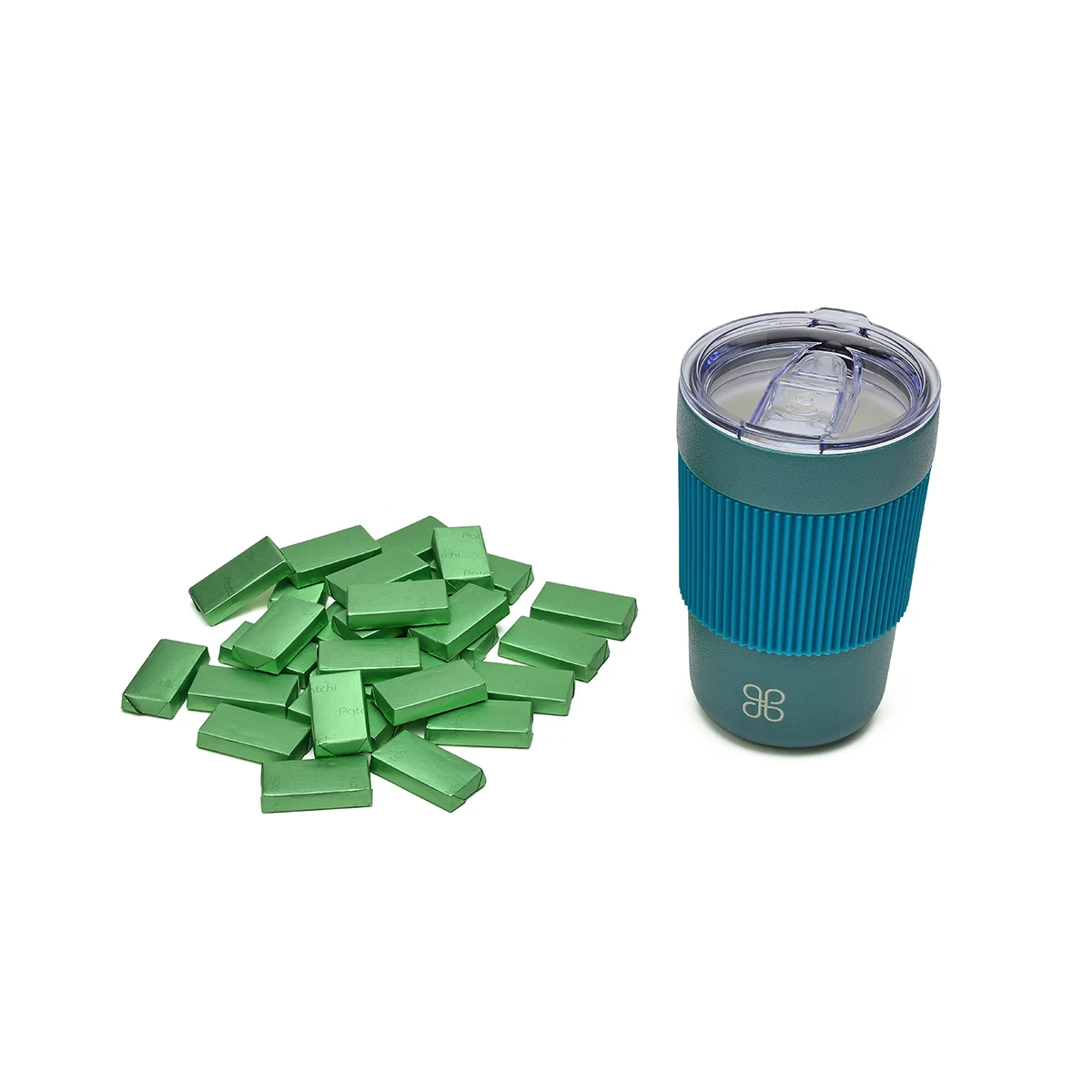 A 180g blue thermos mug paired with chocolates, created for Teacher' s Day. A practical and sweet gift in one.