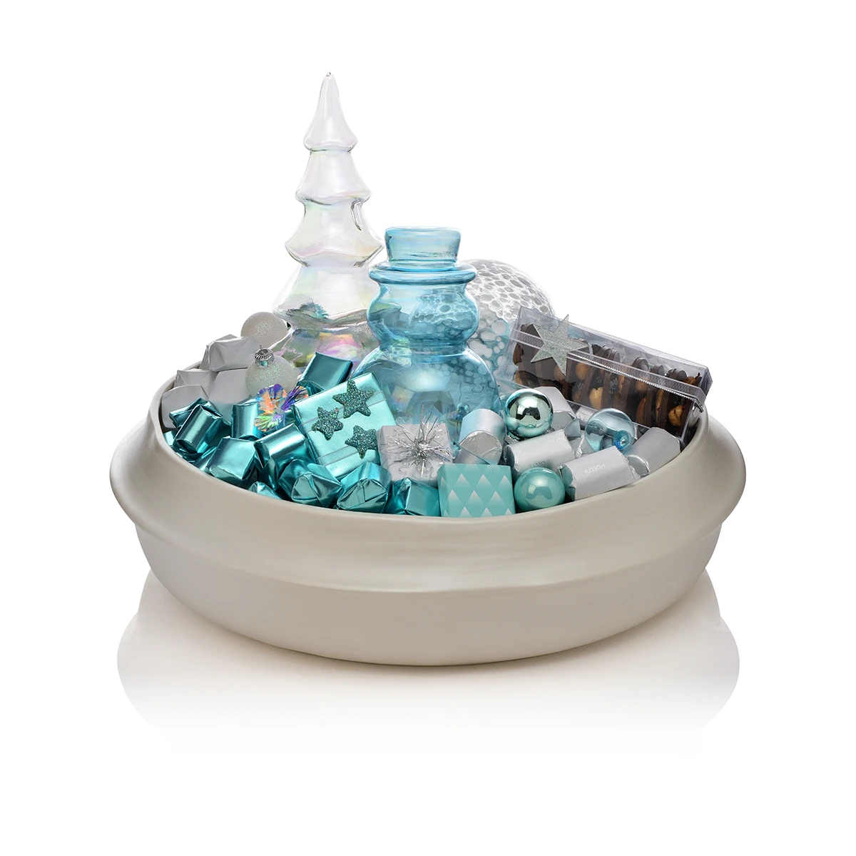 Experience the grandeur of the holidays with this large white ceramic centerpiece, filled with festive chocolates. Its broad design makes it an impressive piece that naturally draws attention, while the chocolates inside capture the flavor of Christmas. Picture it accompanying candlelight, the sparkle of ornaments, and the lively sounds of the season, an invitation to pause and savor. Every chocolate adds to the festive rhythm, making even ordinary moments feel celebratory. More than a serving piece, it is part of the holiday atmosphere, generous in scale and filled with the essence of Christmas indulgence.