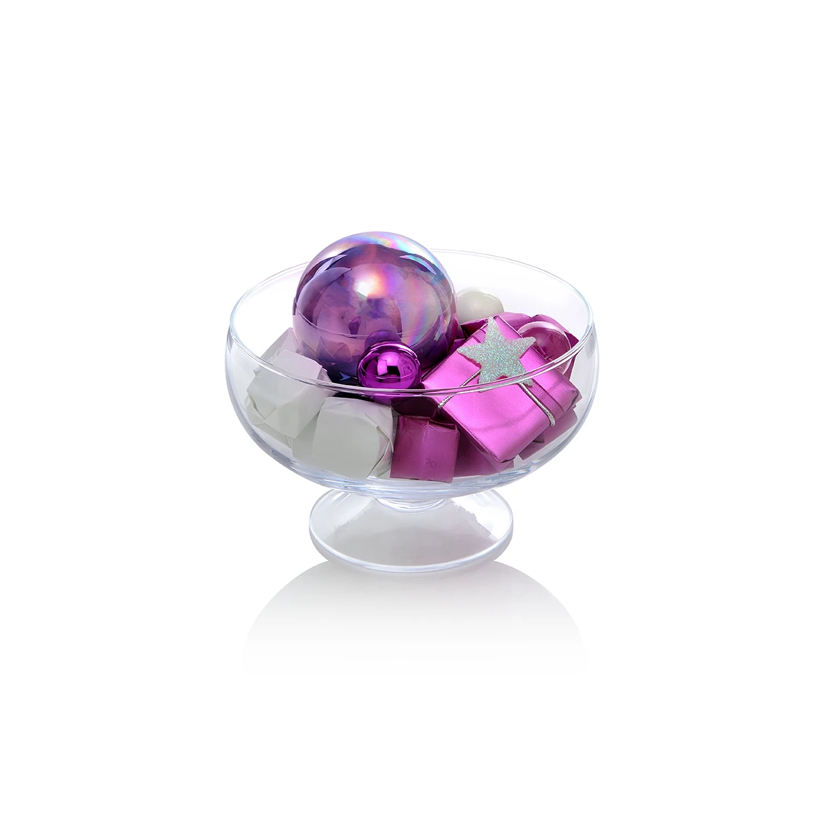 This clear glass bowl is a vision of elegance, filled with a curated selection of our finest chocolates. Its transparent design allows the vibrant holiday treats inside to shine and create a dazzling display of colors and textures. Perfect as a centerpiece for festive tables, it blends versatility with the warmth of Christmas indulgence, bringing beauty, sweetness, and joy to every festive gathering.