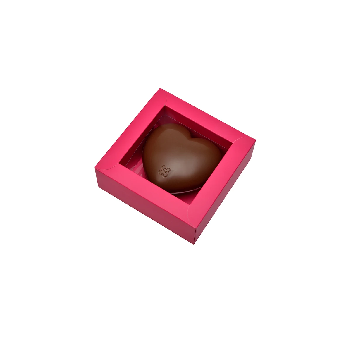 Surprise your loved one with this 3D chocolate heart, crafted to delight inside and out. Filled with a selection of small treats including a cookie heart coated in milk chocolate, a red lip with gianduja, mini rice crispy, and hazelnut dragees. A playful and indulgent Valentine's gift to share moments of sweetness.