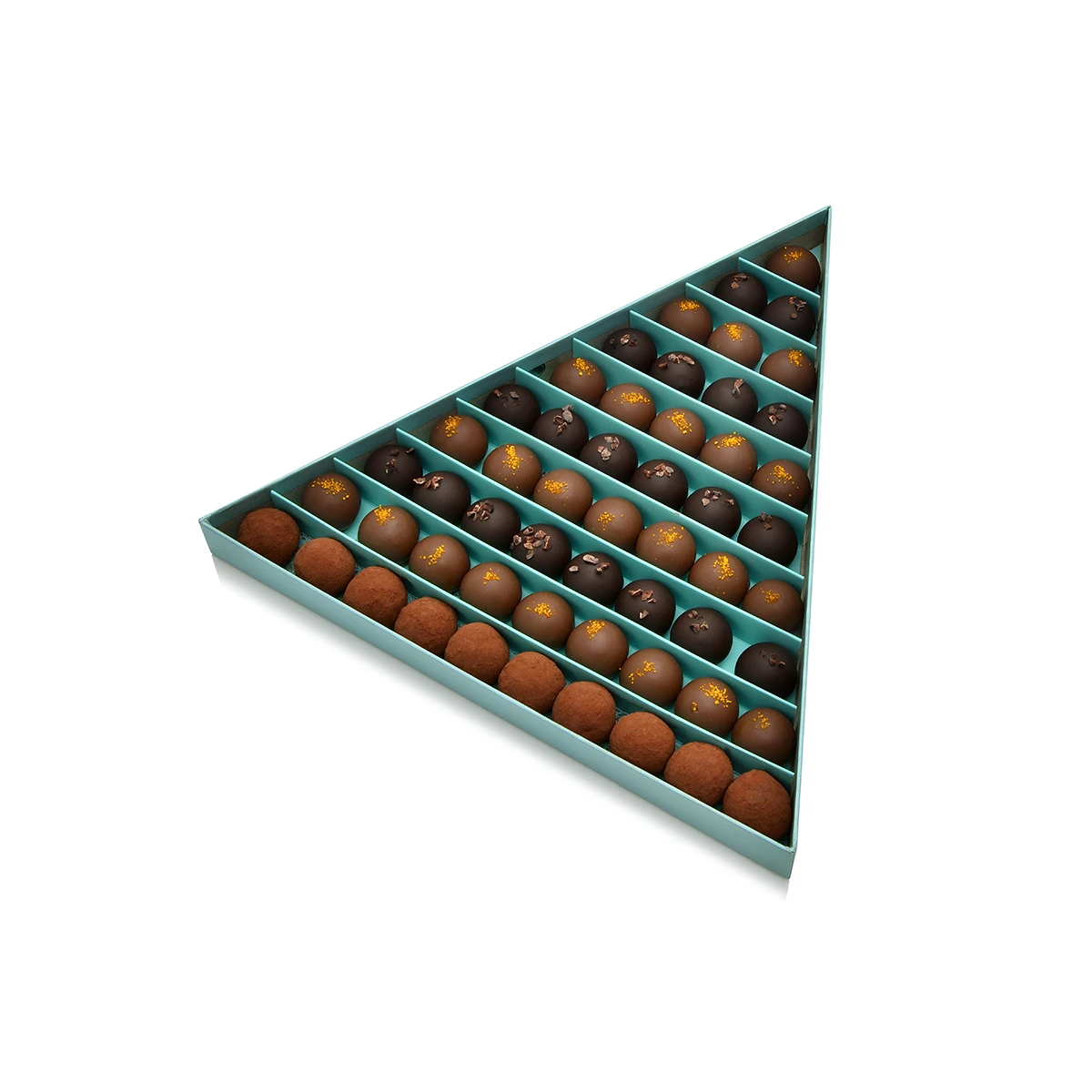 Indulge in the magic of the holidays with our Christmas Moments Truffle Box, a luxurious selection of 55 exquisite chocolate truffles. This festive box is perfect for gifting or adding a touch of elegance to your seasonal celebrations. Each truffle offers a delightful blend of flavors, including vibrant yuzu, rich grue, and intense cacao. With its unique and sophisticated assortment, the Christmas Moments Truffle Box is crafted to make every holiday moment a little more special.